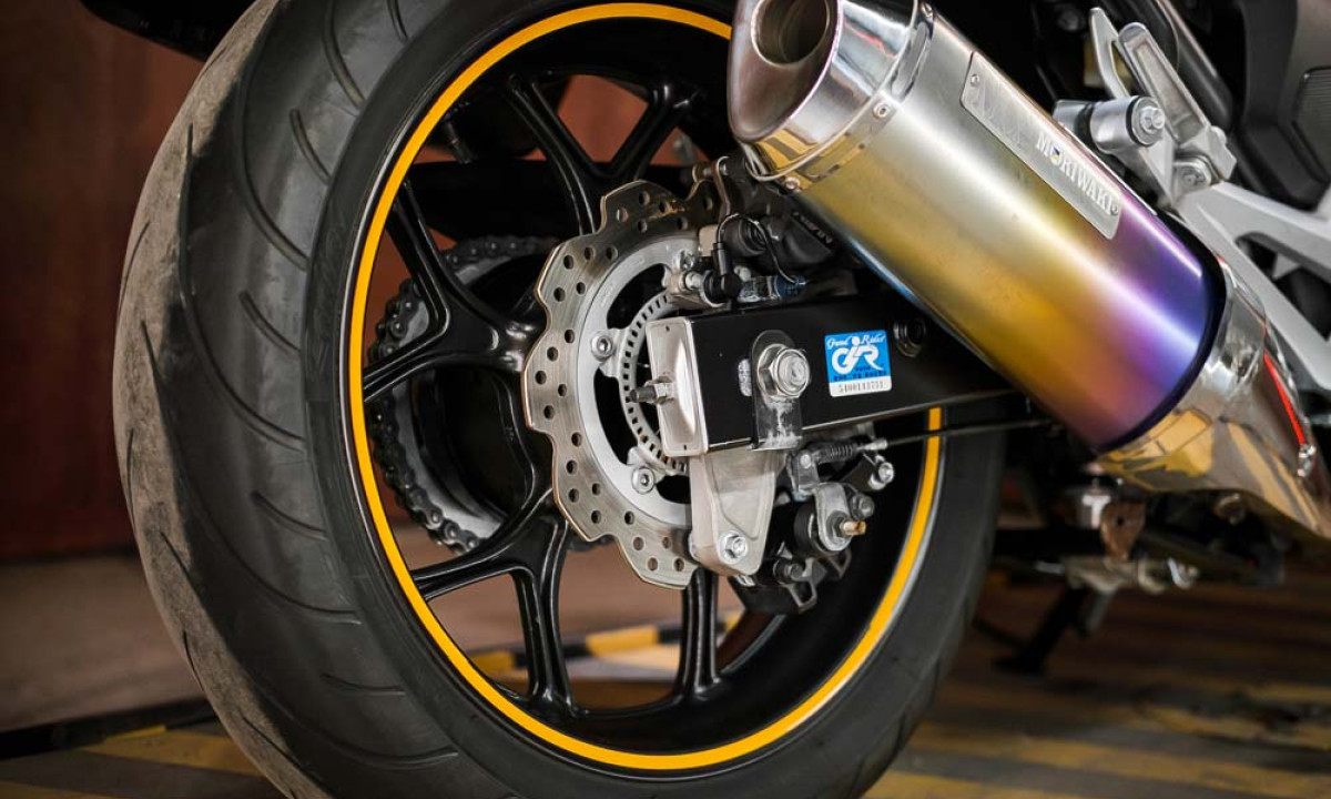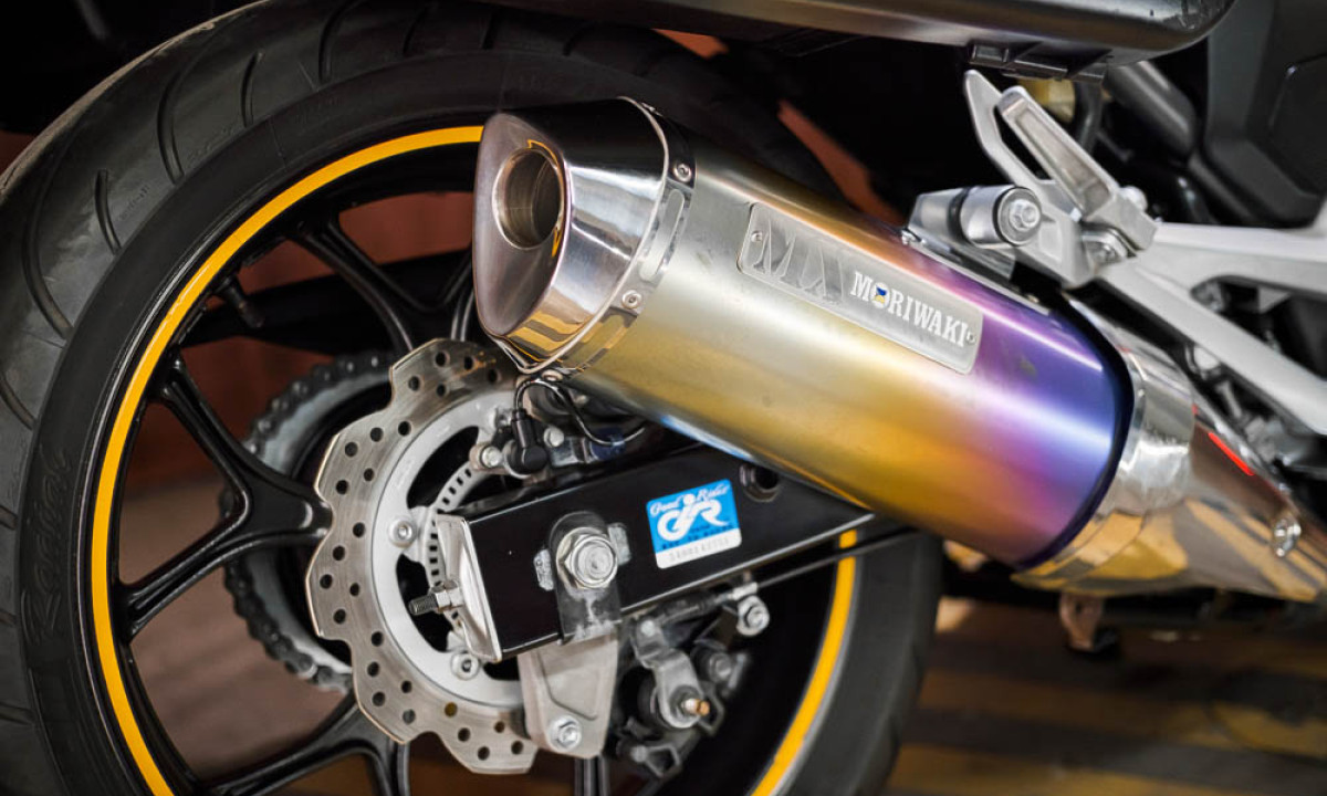 LED свет, стекло Puig, ветрозащита рук, ветрозащита ног, проставки руля, оригинальный подогрев ручек, дуги безопасности, выхлоп Moriwaki, центральная ножка, три оригинальных кофра