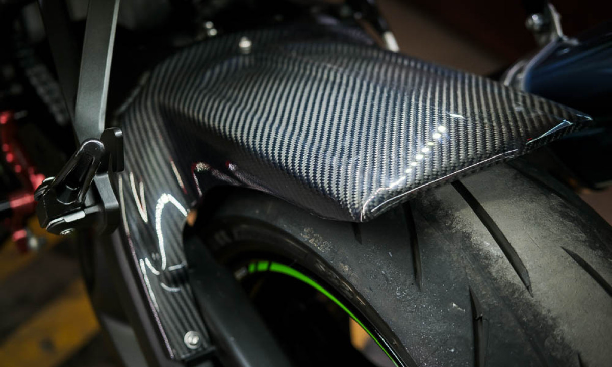 | Наличие дополнительных элементов | Полный выхлоп BEETJAPAN, наклейка на бак, хагер carbon, профессиональные позиционные подножки и лапки переключения/тормоза, грузы клипонов, высокое стекло Puig, задние LED повороты, рамка номера R&G |